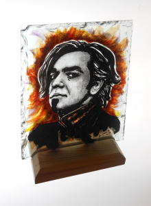 17A -Morgan-scultura in grisaglia su vetro martellato