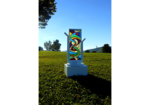 Home/Universo -scultura con vetrata artistica-/Vetrata Artistica ambientata in un parco pubblico